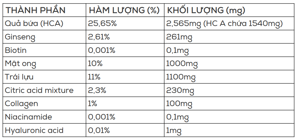 – Thành phần HCA chiết xuất từ quả bứa hỗ trợ: