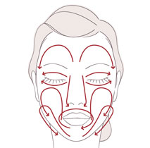 Sau đó dùng ngón tay xoa đều ,nhẹ nhàng theo vòng tròn từ trong ra ngoài như hình ,rồi vỗ nhẹ để cho kem có thể thấm sâu và nhanh vào da