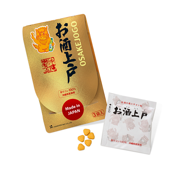 Osake Jogo có thành phần chính là 100% Curcumin Okinawa. Curcumin là chất có tác dụng giảm những ảnh hưởng của chất cồn đối với cơ thể sau khi uống do làm giảm nồng độ chất acetaldehyde trong máu. Nồng độ acetaldehyde cao là nguyên nhân chính gây nên những tác dụng phụ ở những người uống rượu, đặc biệt là người uống rượu bia thường xuyên. Các tế bào gan dần trở nên xơ hóa, chức năng gan suy giảm, các tế bào thần kinh bị tổn thương gây nên tình trạng mệt mỏi, nhức đầu, mất thăng bằng trong và sau khi uống rượu. Do đó, sử dụng Osake Jogo trước và sau khi uống rượu bia là bí quyết giúp duy trì sức khỏe của người dân Okinawa Nhật Bản.